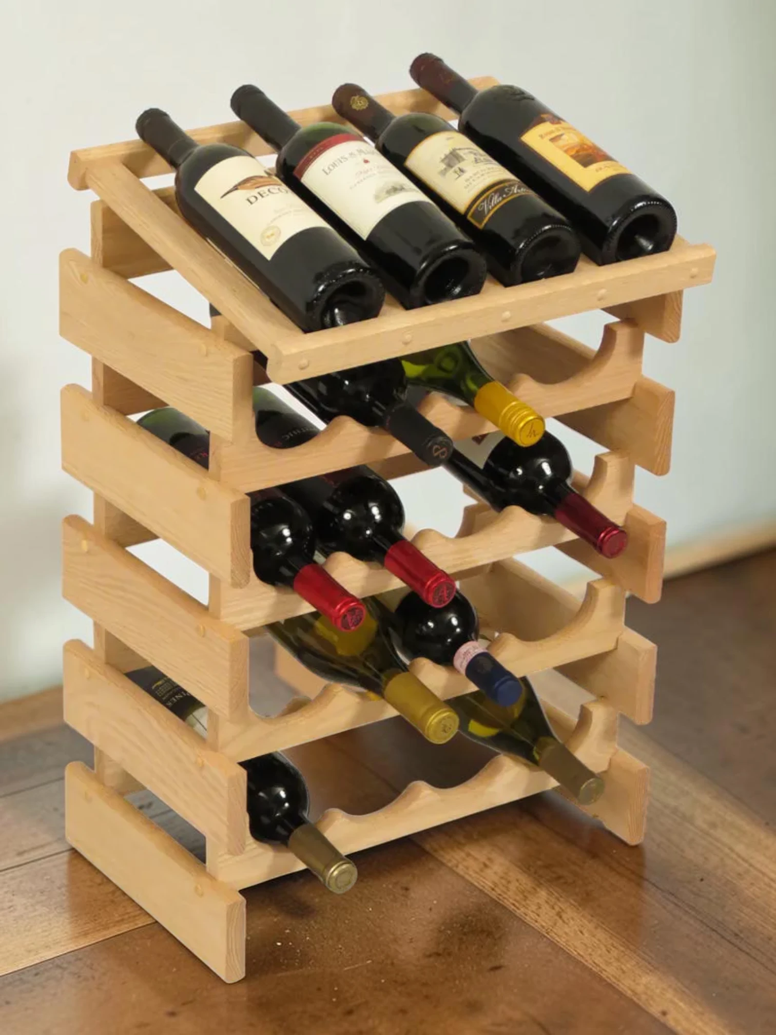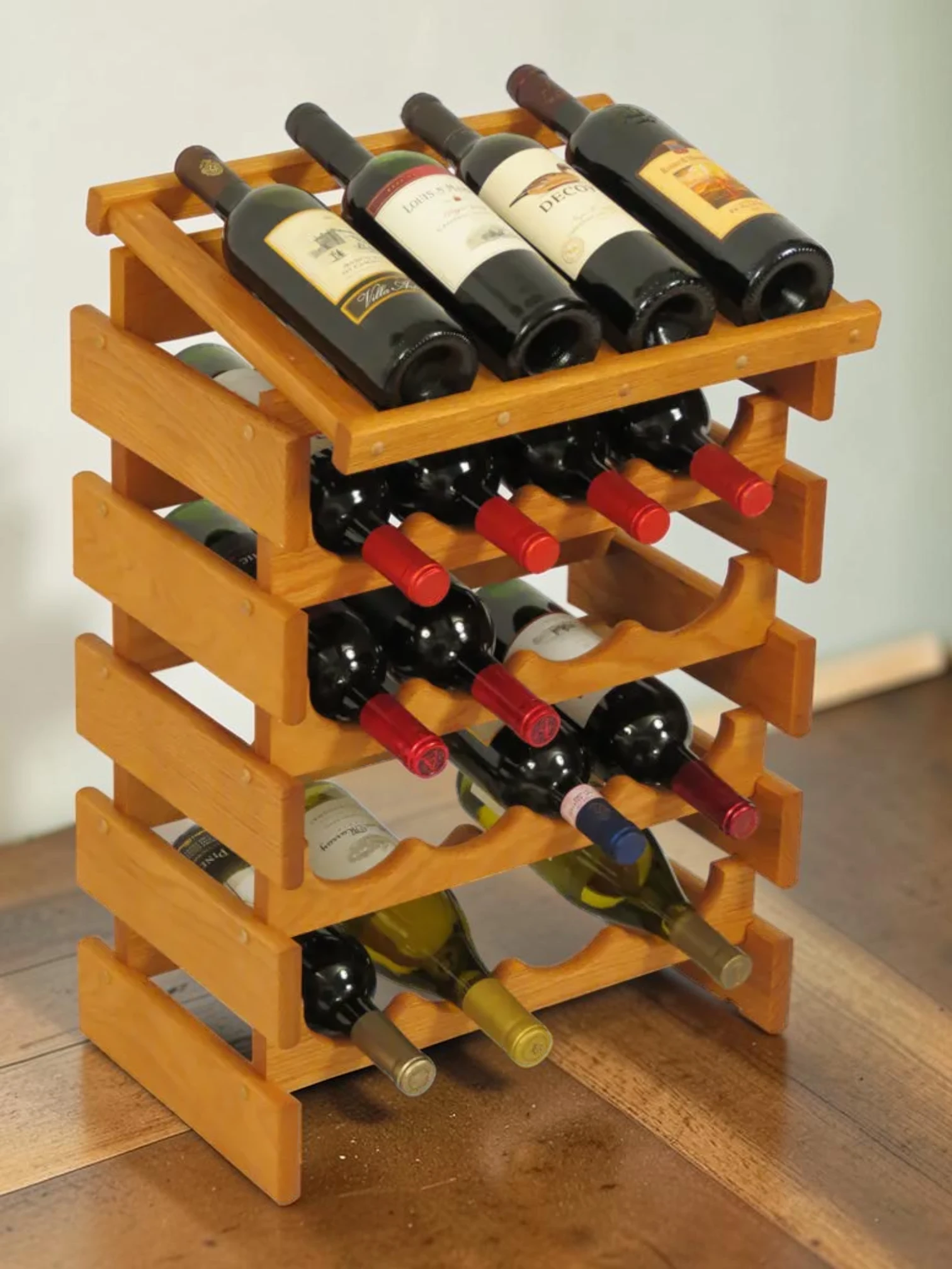 Shelvino Solid Oak 20 Bottle Stackable Wine Rack – Modular Countertop & Floor Storage System