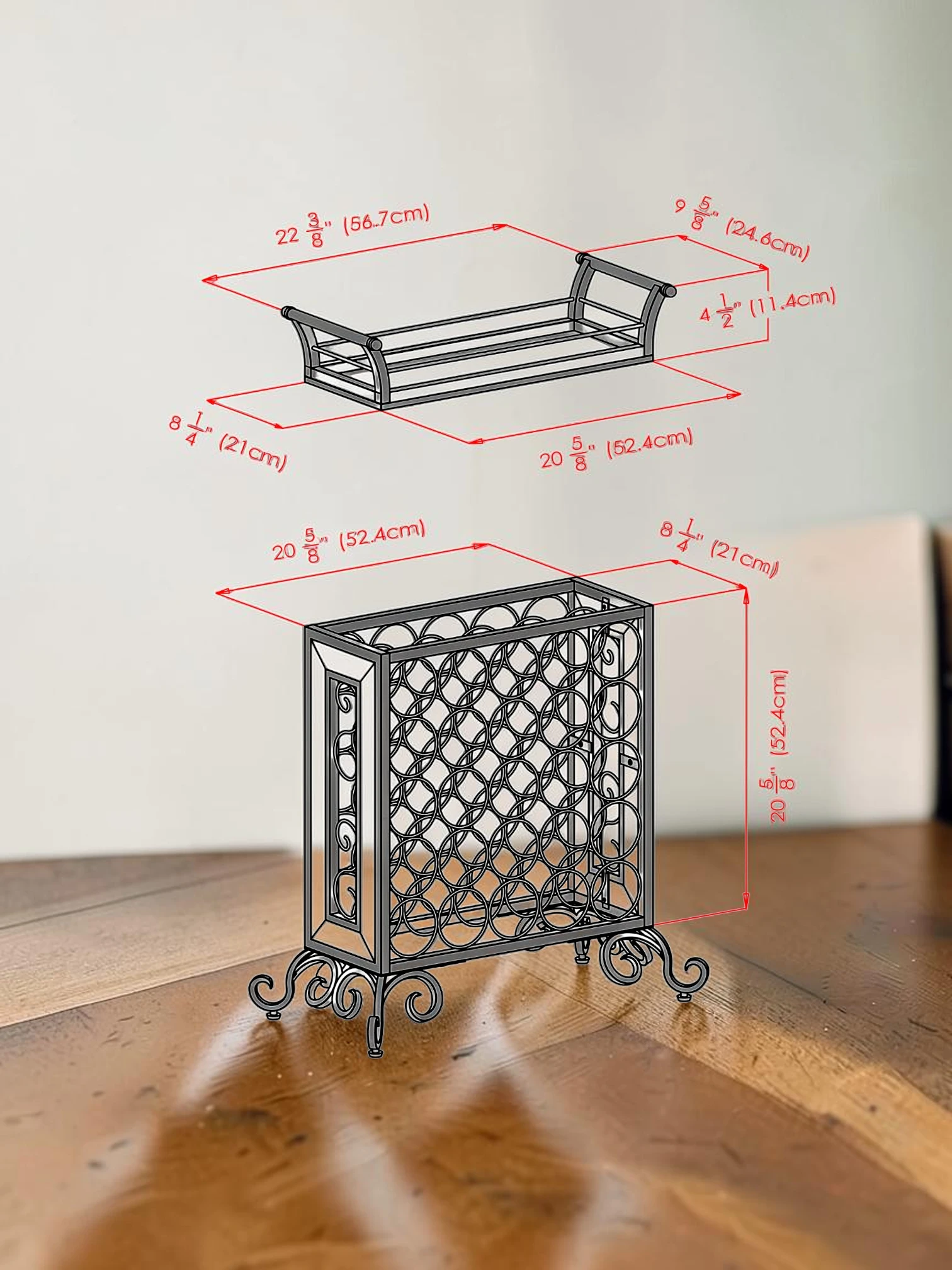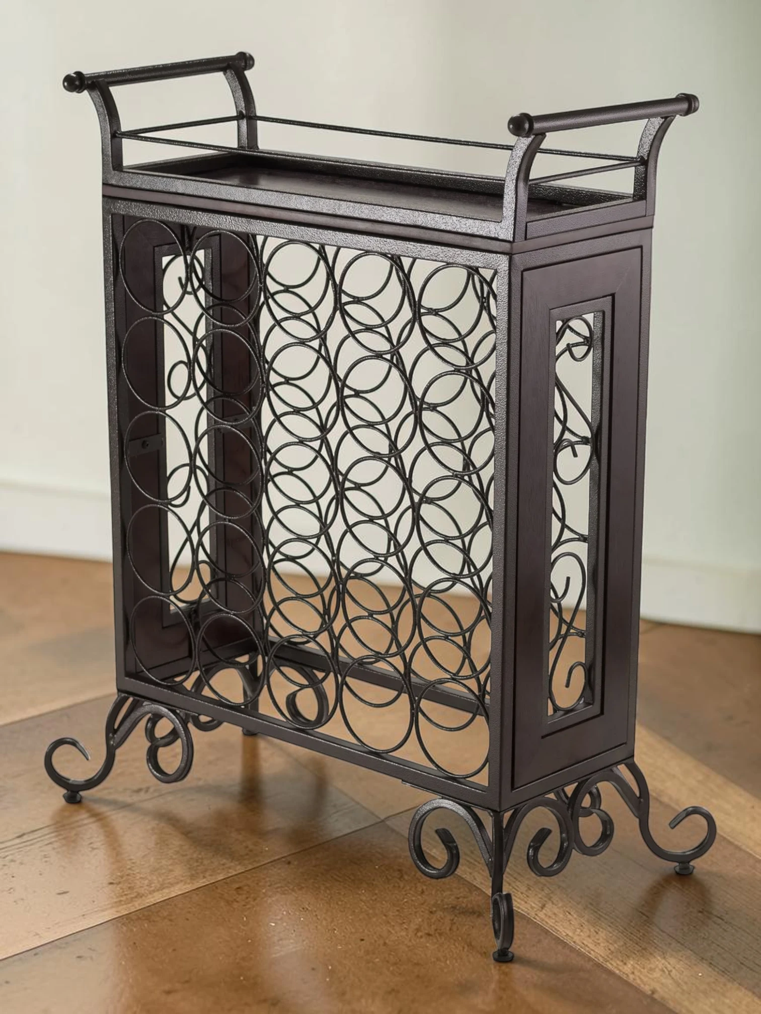 The standout feature of this rack is the custom-fitted, removable serving tray. Whether you are hosting a dinner party or organizing a tasting, the tray offers a dedicated space to prepare glasses and bottles. The tray measures 23.1″W x 10.3″D, providing a spacious surface for effortless entertaining.
